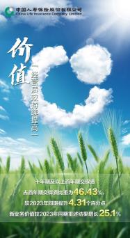 前三季度,中國(guó)人壽持續(xù)強(qiáng)化資產(chǎn)負(fù)債管理,積極推進(jìn)產(chǎn)品多元和業(yè)務(wù)形態(tài)多元,負(fù)債質(zhì)量不斷優(yōu)化,長(zhǎng)期發(fā)展基礎(chǔ)進(jìn)一步夯實(shí)。十年期及以上首年期交保費(fèi)保持快速增長(zhǎng),占首年期交保費(fèi)的比重為46.43%,較2023年同期提升4.31個(gè)百分點(diǎn);新業(yè)務(wù)價(jià)值保持快速增長(zhǎng),較2023年同期重述結(jié)果增長(zhǎng)25.1%。