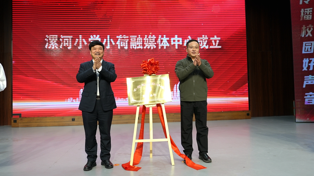 李玉杰在講話中高度評價了小荷融媒體中心的成立,并對融媒體中心的未來發(fā)展提出了殷切期望。他希望融媒體中心能夠充分發(fā)揮自身優(yōu)勢,為學校的教育教學工作和學生的成長發(fā)展做出更大的貢獻。隨后,李玉杰和王海東共同為“小荷融媒體中心”揭牌。