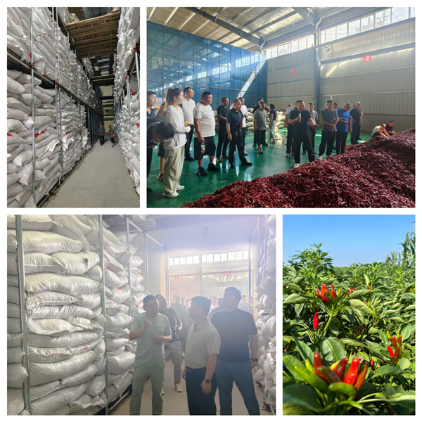 第一站實地參觀“子彈頭”、“三櫻椒”品種辣椒的生長情況,學習“麥椒套種”種植技巧,詢問專家種植模式、病蟲害防治和畝產(chǎn)情況。王崗鎮(zhèn)技術(shù)人員毫無保留地分享了田間管理的關(guān)鍵細節(jié)與多年積累的實用經(jīng)驗,通過細致觀摩和現(xiàn)場講解,系統(tǒng)了解了這一高效種植模式的核心環(huán)節(jié)——從精準選種、科學播種、病蟲防治到高效收獲、專業(yè)存儲及暢通銷售的全鏈條操作流程。第二站實地參觀了王崗鎮(zhèn)辣椒儲存專用冷庫,通過查看冷庫建設(shè)分區(qū)和分揀情況,詳細了解辣椒打包存儲技巧和市場托管銷售等關(guān)鍵環(huán)節(jié),為種植大戶安心發(fā)展種植注入“強心劑”。