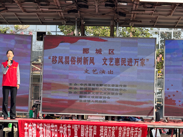 為推動(dòng)黨的創(chuàng)新理論深入基層、移風(fēng)易俗深入人心,在國慶、中秋雙節(jié)即將到來之際,孟廟鎮(zhèn)于9月30日在時(shí)代廣場開展“移風(fēng)易俗樹新風(fēng),文藝惠民進(jìn)萬家”文藝演出暨黨的創(chuàng)新理論宣講活動(dòng)。