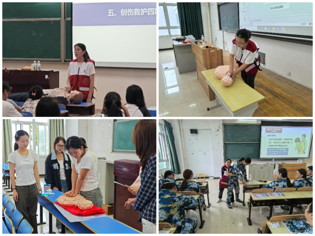 高標(biāo)啟動(dòng),營造濃厚氛圍。聯(lián)合漯河市紅十字會(huì)舉行2025級新生應(yīng)急救護(hù)公益培訓(xùn)啟動(dòng)儀式,通過儀式化活動(dòng)傳遞“急救重要性”理念,營造“人人學(xué)急救、人人懂急救”的校園氛圍?,F(xiàn)場示范,激發(fā)學(xué)習(xí)熱情。邀請漯河市紅十字會(huì)應(yīng)急救護(hù)專業(yè)講師現(xiàn)場演示心肺復(fù)蘇(CPR)、AED使用、氣道異物梗阻解除及創(chuàng)傷包扎等關(guān)鍵急救技能,同時(shí)設(shè)置模擬實(shí)操環(huán)節(jié),引導(dǎo)新生主動(dòng)參與、親手練習(xí),有效激發(fā)新生學(xué)習(xí)和掌握急救技能的內(nèi)在動(dòng)力。全員施訓(xùn),夯實(shí)安全基礎(chǔ)。結(jié)合新生軍訓(xùn)關(guān)鍵期,依托學(xué)校急救教育講師團(tuán),全面推進(jìn)“急救教育進(jìn)連隊(duì)”專項(xiàng)行動(dòng),通過“分班授課+分組實(shí)操”的方式,實(shí)現(xiàn)2025級全體新生應(yīng)急救護(hù)技能培訓(xùn)“全覆蓋、無遺漏”,切實(shí)將急救知識轉(zhuǎn)化為學(xué)生的實(shí)用技能,筑牢校園安全第一道防線。
