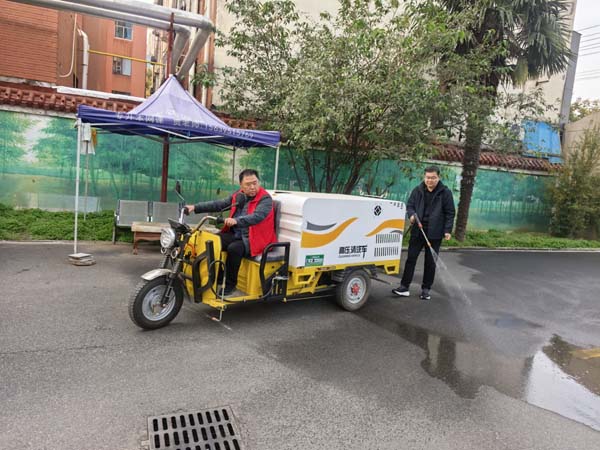 公共區(qū)域的“煥顏洗禮”:高壓水槍發(fā)出有力的轟鳴,水流所到之處,地面沉積的污漬、苔蘚被一掃而光。志愿者們揮舞著掃帚,配合水槍沖洗,將淤泥和積水推向下水道。沖洗過(guò)的地面露出了原有的顏色,在陽(yáng)光下泛著濕潤(rùn)的光澤,仿佛為小區(qū)進(jìn)行了一次徹底的“潔面”。