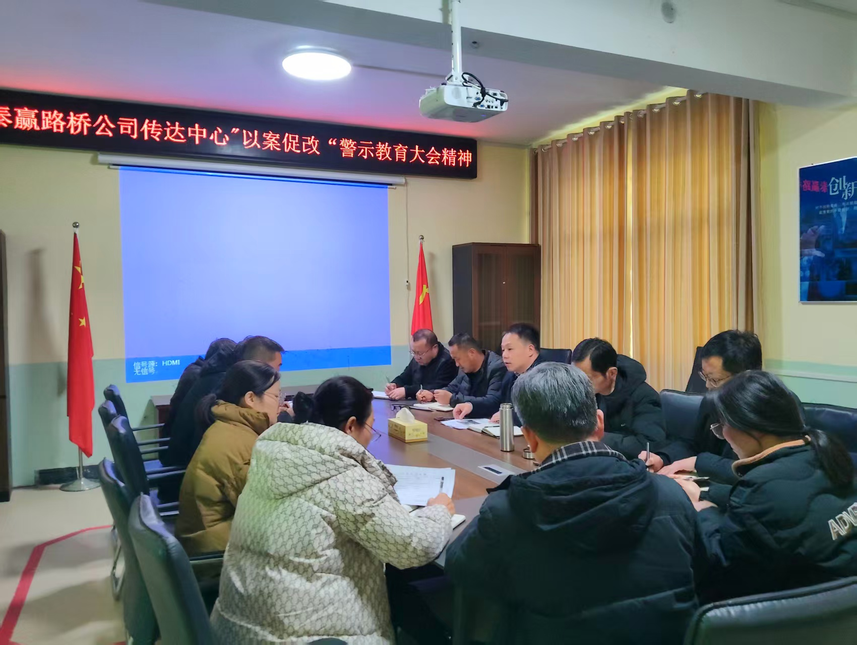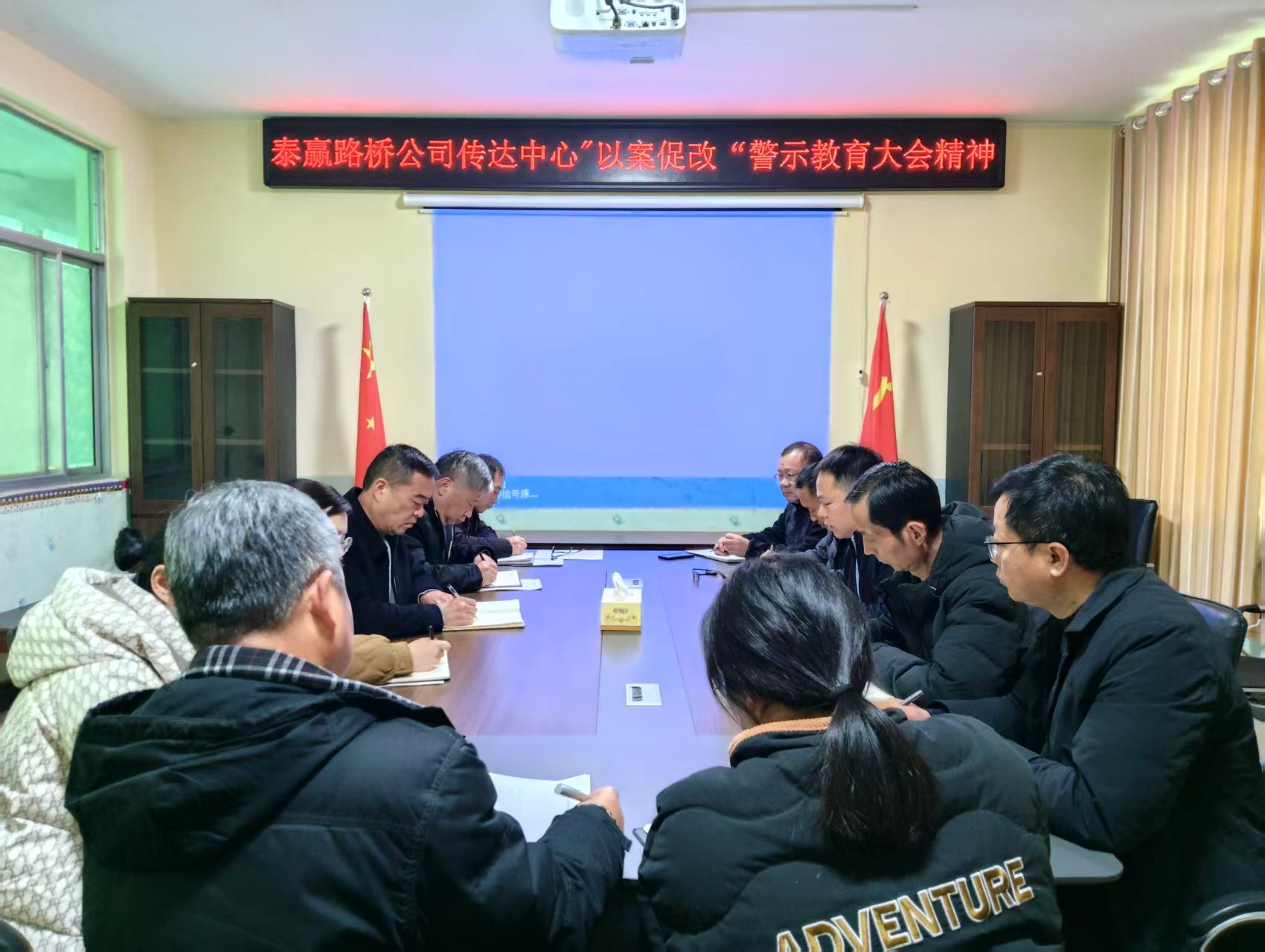 為深入貫徹全面從嚴(yán)治黨要求,強(qiáng)化干部職工紀(jì)律意識與拒腐防變能力,12月29日,泰贏路橋公司組織領(lǐng)導(dǎo)班子、各部門負(fù)責(zé)人及關(guān)鍵崗位人員召開專題會議,傳達(dá)學(xué)習(xí)上級“以案促改”警示教育大會精神。