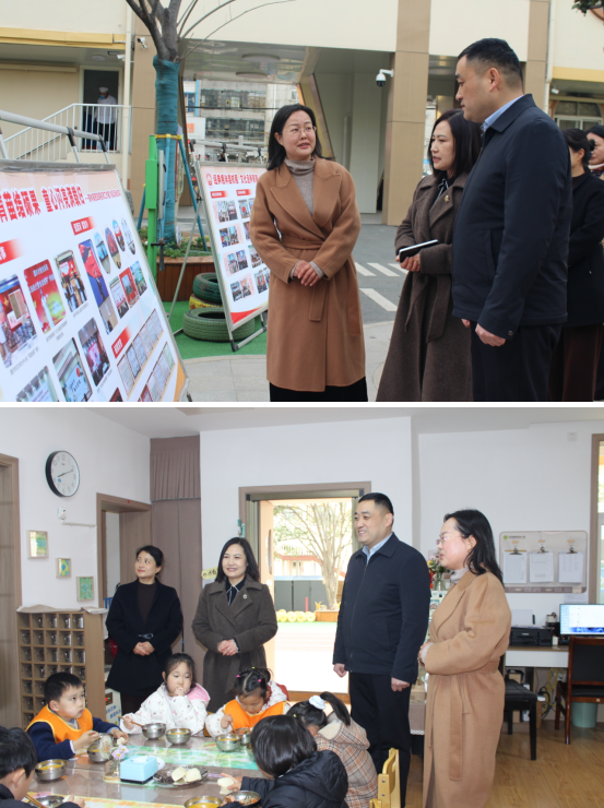 活動開始前,參會嘉賓參觀了幼兒園思政教育成果展板,直觀感受思政教育在幼兒園開展的實踐成效。聶局長一行深入班級調(diào)研,與孩子們親切互動,對園所思政教育融入日常的做法予以高度贊許和肯定。