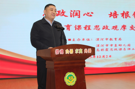 霜染初冬凝暖意,教潤童心啟新章。為深入貫徹落實立德樹人根本任務(wù),探索符合幼兒年齡特點的課程思政模式與方法,提升幼兒園教師開展課程思政的能力與水平,增進園所間的交流學(xué)習(xí),12月2日上午,漯河市學(xué)前教育課程思政觀摩交流活動在市直幼兒園舉行。漯河市教育局黨組成員、副局長聶廣橋出席。市教育局秘書科科長馮文權(quán),市教育教學(xué)研究室政治教研員、市大中小學(xué)思政課一體化建設(shè)委員會秘書長夏忠新,市屬幼兒園主管園長、骨干教師;市幼兒園領(lǐng)航工作室共同體單位、市直幼兒園教育集團主管領(lǐng)導(dǎo)、骨干教師以及市大中小學(xué)思政課名師工作室主持人參與了本次活動。