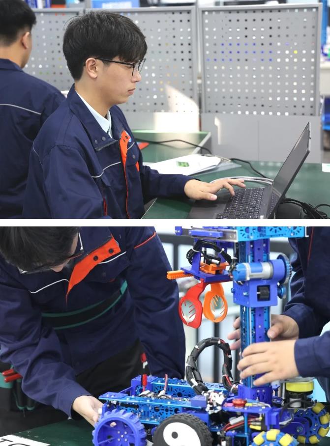 作為備戰(zhàn)第三屆全國技能大賽自主移動機(jī)器人(世賽選拔項(xiàng)目)的選手,楊奇瑞深知,全國技能大賽的賽場沒有僥幸。自主移動機(jī)器人項(xiàng)目技術(shù)復(fù)雜、精度要求高,涉及機(jī)械裝配、電路搭建、傳感器調(diào)試、路徑規(guī)劃與智能控制等多個(gè)模塊,容錯(cuò)率極低。一個(gè)微小的代碼錯(cuò)誤或機(jī)械偏差,就可能導(dǎo)致整套系統(tǒng)失效。省賽奪冠后,全國賽的對手更強(qiáng)、標(biāo)準(zhǔn)更高、任務(wù)更難。楊奇瑞沒有松懈,反而更加拼命。為了攻克難關(guān),他和搭檔介明鑫反復(fù)演練上百種場景,記錄上千組數(shù)據(jù),常常為解決一個(gè)問題通宵達(dá)旦。困了,就在實(shí)訓(xùn)室椅子上瞇一會兒;餓了,泡一碗面繼續(xù)干。