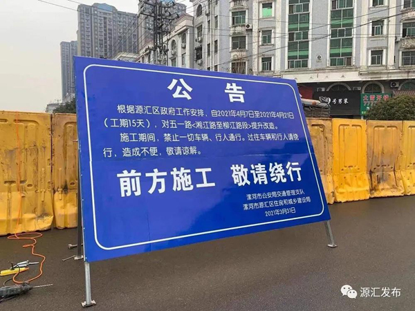 4月7日上午,源匯區(qū)公路養(yǎng)護(hù)中心正式對五一路(湘江路至柳江路段)進(jìn)行道路提升改造,實行全封閉斷行,施工期間,禁止一切車輛及行人通行。