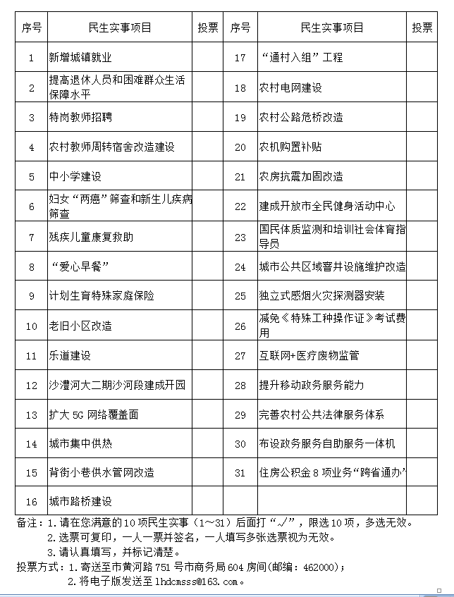 登錄“漯河手機(jī)報”“漯河日報”“漯河小城生活”“漯河發(fā)布”、“漯河督查”微信平臺,進(jìn)入“2021漯河·群眾最滿意的民生實事”評選活動公告進(jìn)行投票。
