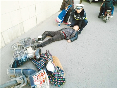 張斌說(shuō),在人民路涵洞由西向東的非機(jī)動(dòng)車道上,一名40歲左右的男子躺在地上,旁邊倒著一輛電動(dòng)車。他蹲下后感到酒氣撲鼻,多次叫那名男子,但男子都沒(méi)有反應(yīng)。
