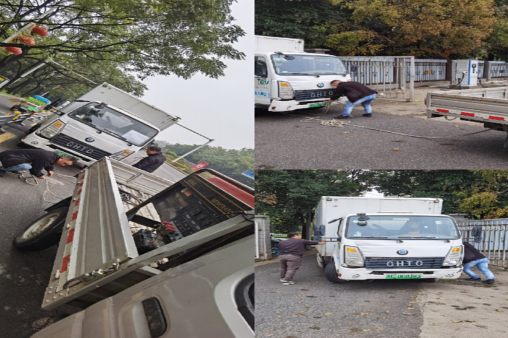 在市區(qū)駐點(diǎn)的劉照明同志在接到消息后,第一時(shí)間組織人手奔赴現(xiàn)場(chǎng)。一線員工在現(xiàn)場(chǎng)見到焦急等待的張師傅,告訴張師傅:“不要慌張。”然后駕駛公司的應(yīng)急通訊車把貨車拖到了市區(qū)駐點(diǎn),幫其解除了困境,避免了貨車司機(jī)的重大損失。
