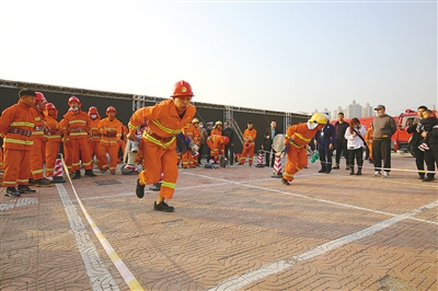消防員技能比武競賽。本報(bào)記者 朱 紅 攝