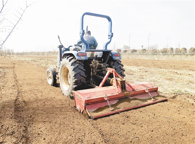 3月26日,臨潁縣皇帝廟鄉(xiāng)王老莊村村民正在使用拖拉機(jī)耕田,準(zhǔn)備種植蔬菜。