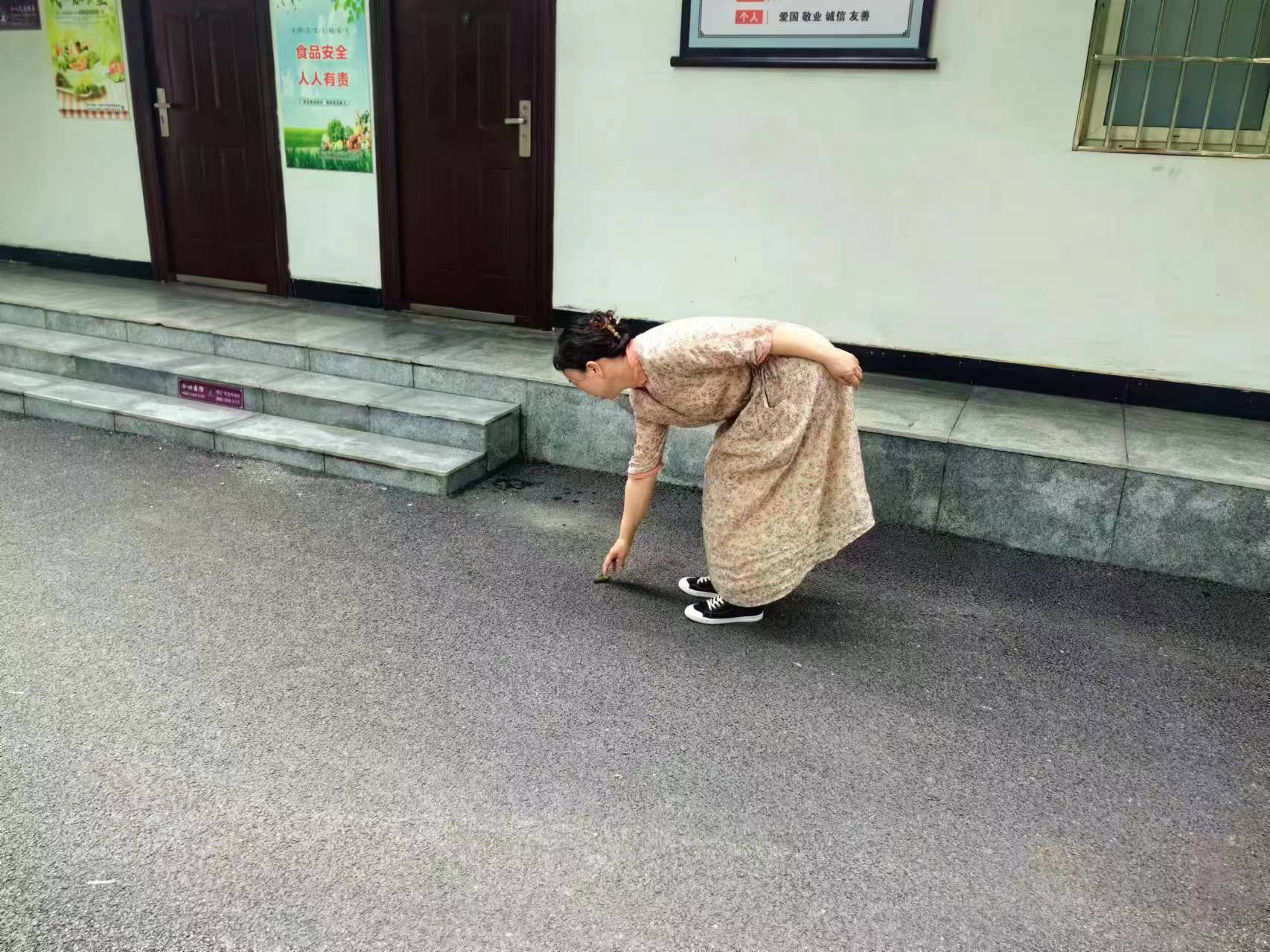 7月20日,許慎文化園,游客撿垃圾的文明行為。