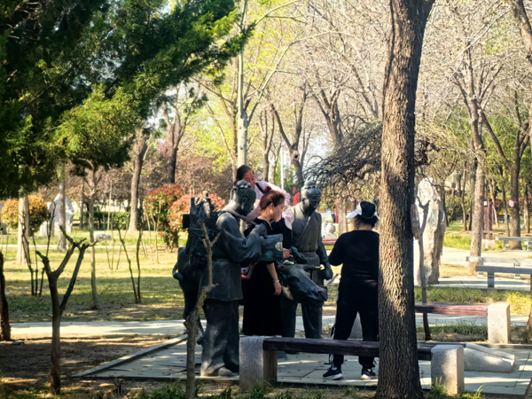 清明期間,鳥文化園,游客觸摸塑像不文明。