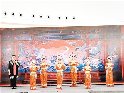 與孔淑瑩合唱的是郾城區(qū)龍湖學(xué)校非遺社團的孩子們,從今年4月份開始排練。8歲的表演者張議文說:“我很喜歡唱戲,能在這里為大家表演特別開心。”