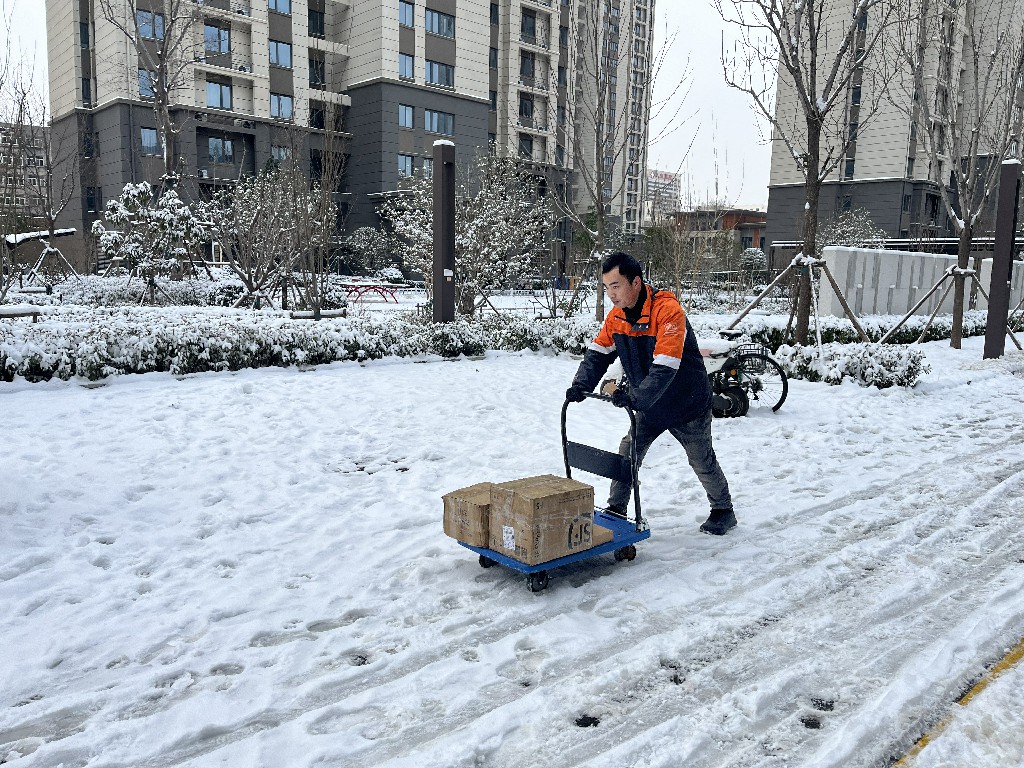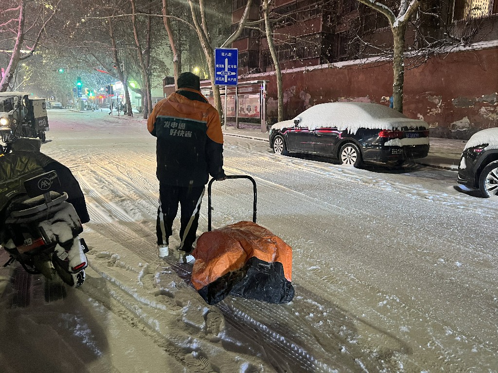 在申通鄭州機場網(wǎng)點,快遞員張坤甚至自創(chuàng)了“雪地配送法”——用氣泡膜包裹易碎件,用防水袋套好文件,重物放在車底。他說:“有些東西不能凍,有些東西不能濕,客戶放心交給我們,我們就要多想一步。”