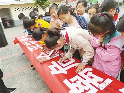 志愿者用一個(gè)個(gè)實(shí)例、一組組數(shù)據(jù),向?qū)W校師生和家長講解防溺水安全知識,提醒學(xué)生們“遠(yuǎn)離危險(xiǎn)水域”。隨后,全校師生一起莊嚴(yán)宣誓:珍愛生命,預(yù)防溺水,遠(yuǎn)離危險(xiǎn),平安成長。學(xué)生們還認(rèn)真地在紅色條幅上簽名,表達(dá)“絕不一個(gè)人下水游泳”的決心。