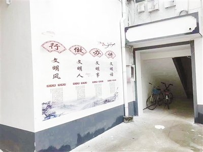 小區(qū)內(nèi)墻面進行了粉刷,并寫上了文明標(biāo)語。