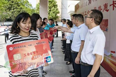 工會(huì)員工代表滿心歡喜的接過(guò)工行工會(huì)會(huì)員卡