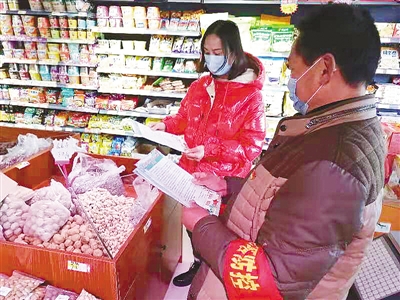 (記者 潘麗亞)2月1日上午,在市區(qū)太行山路,郾城區(qū)龍塔街道和平路社區(qū)黨員志愿者韓啟州正在給沿街商戶(hù)發(fā)放疫情防控知識(shí)宣傳單。