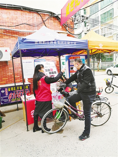 近日,郾城區(qū)沙北街道泰山社區(qū)發(fā)布防疫志愿者招募令,短時間內(nèi),有45名志愿者積極報名。據(jù)社區(qū)負(fù)責(zé)人趙保偉介紹,泰山社區(qū)共有28個無主管小區(qū),2個專業(yè)小區(qū),常住居民1.43萬人,共設(shè)立7個卡點(diǎn)。圖為志愿者為社區(qū)居民測量體溫。記者 吳艷敏 攝