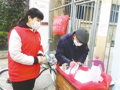 付明云今年53歲,社區(qū)疫情防控工作開(kāi)始后,她主動(dòng)參與其中。在人民東路131號(hào)院內(nèi)居住多年,付明云對(duì)該院居民的情況十分熟悉,防疫工作前期,她和社區(qū)工作人員一起走訪社區(qū)居民,每到一戶,她都會(huì)囑咐說(shuō):“我是咱小區(qū)的志愿者,不管有啥事,只管和我說(shuō),我一定想辦法做到。”