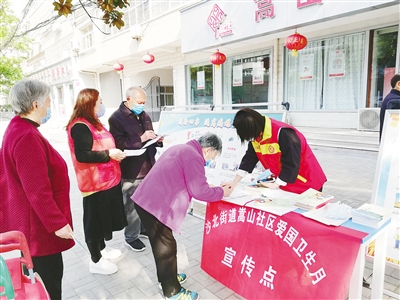 4月7日,郾城區(qū)沙北街道嵩山社居委通過健康教育宣傳欄等開展群眾性愛國(guó)衛(wèi)生運(yùn)動(dòng)宣傳活動(dòng)。 記者 吳艷敏 攝