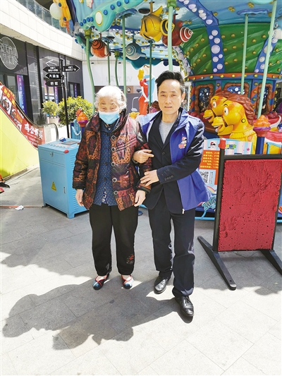 趙廣月工作的時候,他的媽媽就在廣場內(nèi)散步、曬太陽。看見稀奇的東西,她也喜歡像孩子一樣問東問西。趙廣月只要閑下來,就趕緊尋找母親的身影。