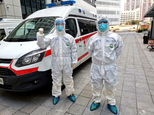 市二院醫(yī)療急救運轉(zhuǎn)隊是2月5號到達武漢,經(jīng)過兩天的緊張集訓,今天他們就要開始接到首次急救運轉(zhuǎn)任務(wù)。“第一次經(jīng)歷如此重大的戰(zhàn)斗,會緊張、有壓力。”市二院轉(zhuǎn)運醫(yī)療隊的隊員們深知,每一次轉(zhuǎn)送任務(wù)就是離危險更近一步,但沒有一個人打退堂鼓,大家相互鼓勵打氣,克服了許多難以想像的困難。執(zhí)行任務(wù),穿上密不透氣的防護服,一穿就是幾個小時,衣服濕了又干干了又濕。因為怕上廁所,不敢喝水,回來后要經(jīng)過嚴格的車輛和個人消毒處理,忙活完,大家累得都吃不下飯。