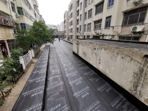 ▲市住建局分包“三無樓院”治理實(shí)景。(非機(jī)動(dòng)車庫屋頂防水)