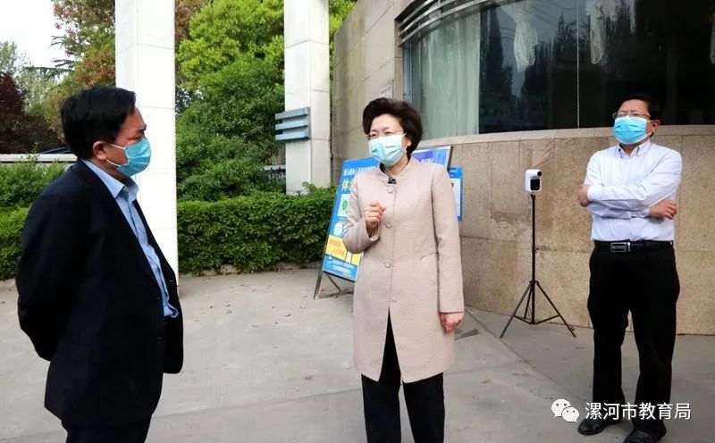 常英敏在漯河高中察看疫情防控工作,王江濤、甘德建、周英民陪同
