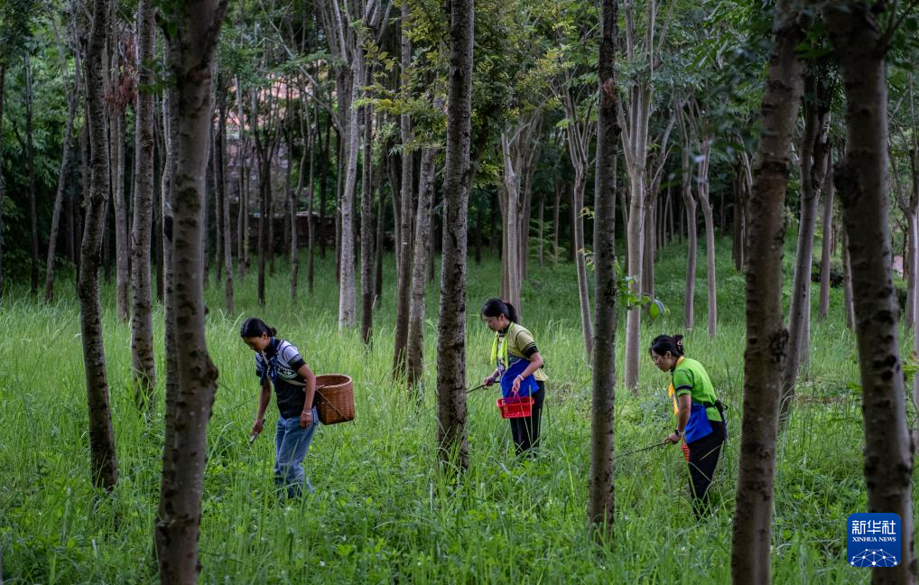 7月3日,云南省文山壯族苗族自治州文山市東山鄉(xiāng)小馬廠村的村民在林間采摘野生食用菌。