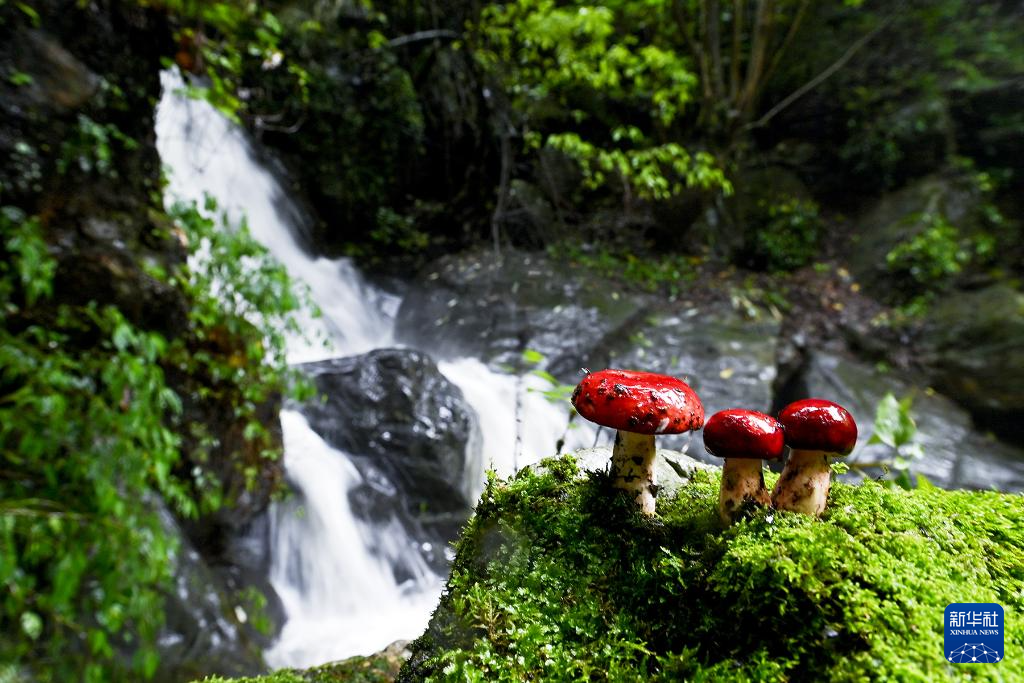 7月2日,在云南省大理白族自治州南澗彝族自治縣公郎鎮(zhèn)自強村無量山中拍攝的大紅菌。