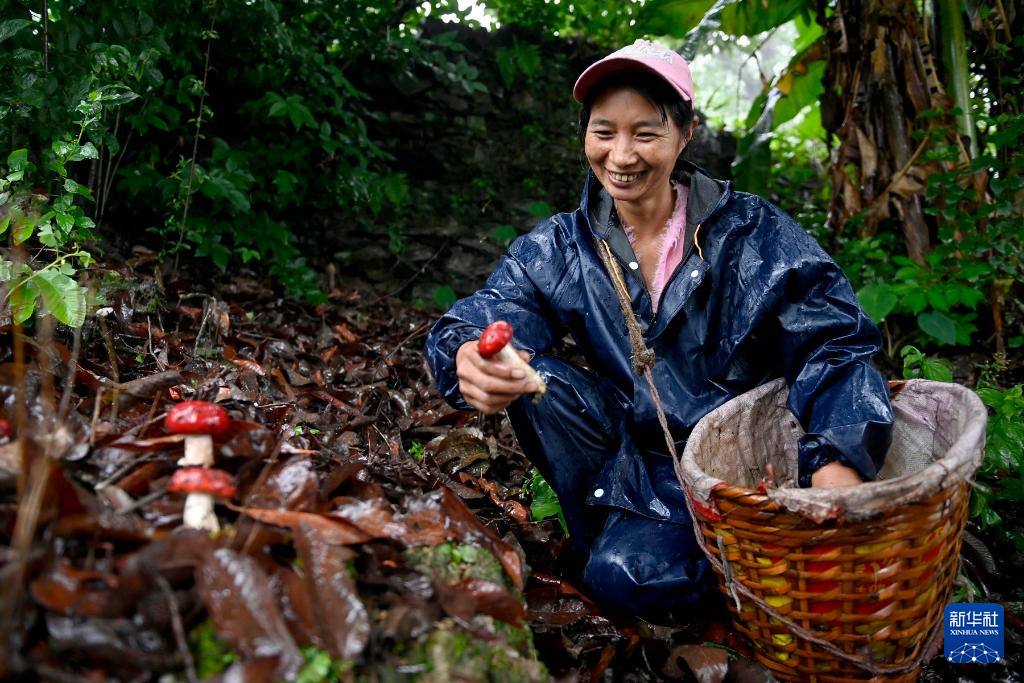 7月2日,云南省大理白族自治州南澗彝族自治縣公郎鎮(zhèn)村民在采摘大紅菌。