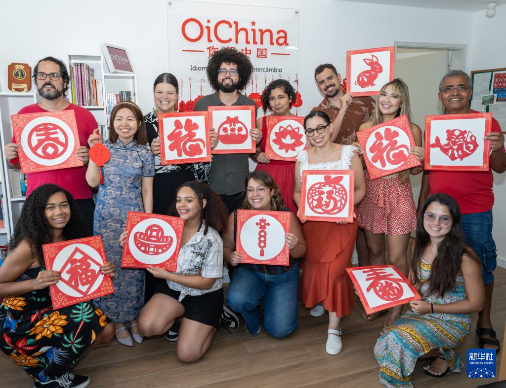 1月18日,人們在巴西里約熱內(nèi)盧舉行的中國春節(jié)文化體驗活動上展示他們一起制作的剪紙。