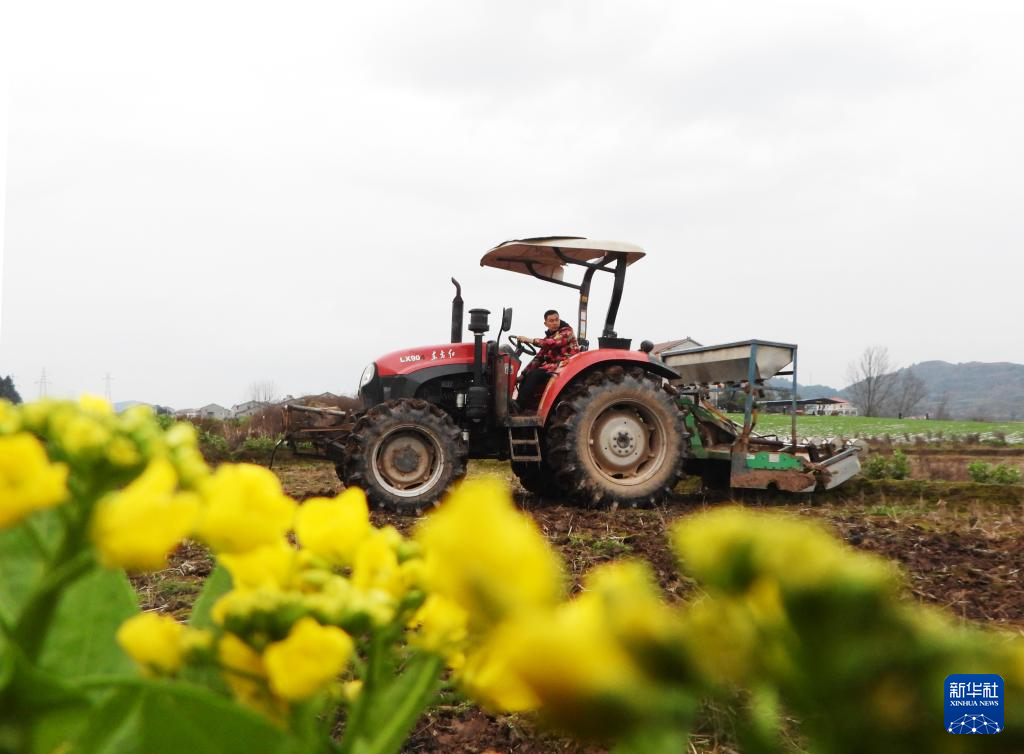 2月7日,在四川省達州市渠縣臨巴鎮(zhèn)四面村,村民駕駛農機翻田準備播種玉米。
