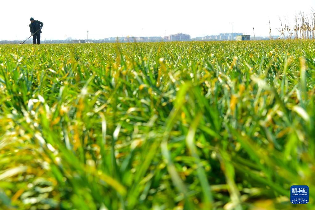 2月9日,山東省棗莊市山亭區(qū)城頭鎮(zhèn)徐洼村農民在麥田勞作。