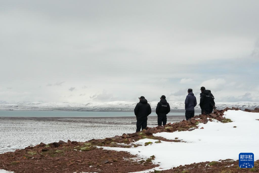 巡山隊(duì)員在可可西里卓乃湖附近巡護(hù)(7月3日攝)。
