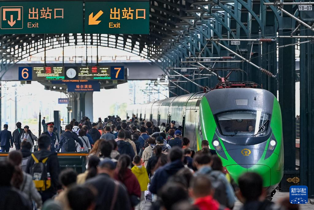 10月7日,旅客從哈爾濱火車站乘車出行。