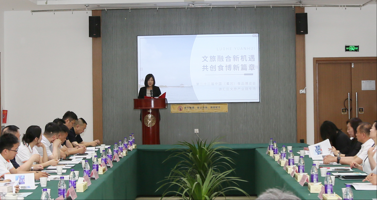 齊琳同志圍繞源匯區(qū)文旅產(chǎn)業(yè)發(fā)展現(xiàn)狀及優(yōu)勢(shì)作了專題宣傳推介,簡(jiǎn)要介紹近年來源匯區(qū)堅(jiān)持“文化點(diǎn)亮城市、產(chǎn)業(yè)彰顯特色、創(chuàng)新引領(lǐng)未來”發(fā)展理念,立足“文商旅創(chuàng)融合中心區(qū)”發(fā)展定位,高起點(diǎn)站位、高標(biāo)準(zhǔn)謀劃、高質(zhì)量推進(jìn),做好文旅文創(chuàng)融合文章,積極培育文旅文創(chuàng)消費(fèi)新業(yè)態(tài)新場(chǎng)景,全力推動(dòng)文旅產(chǎn)業(yè)鏈項(xiàng)目建設(shè),走出一條以文化人、以文興業(yè)的新路子。最后表示將以此次食博盛會(huì)為契機(jī),以文旅融合為抓手,以食品文化為貫穿,依托轄區(qū)河上街景區(qū)和漯灣古鎮(zhèn)超高人氣和特色資源優(yōu)勢(shì),持續(xù)豐富旅游產(chǎn)品和旅游供給,激發(fā)消費(fèi)潛力,提升文化能級(jí),擦亮文商旅創(chuàng)融合新名片,傾力將源匯區(qū)打造成“在者舒心、來者傾心、聞?wù)邉?dòng)心”的全國(guó)知名文化旅游目的地。